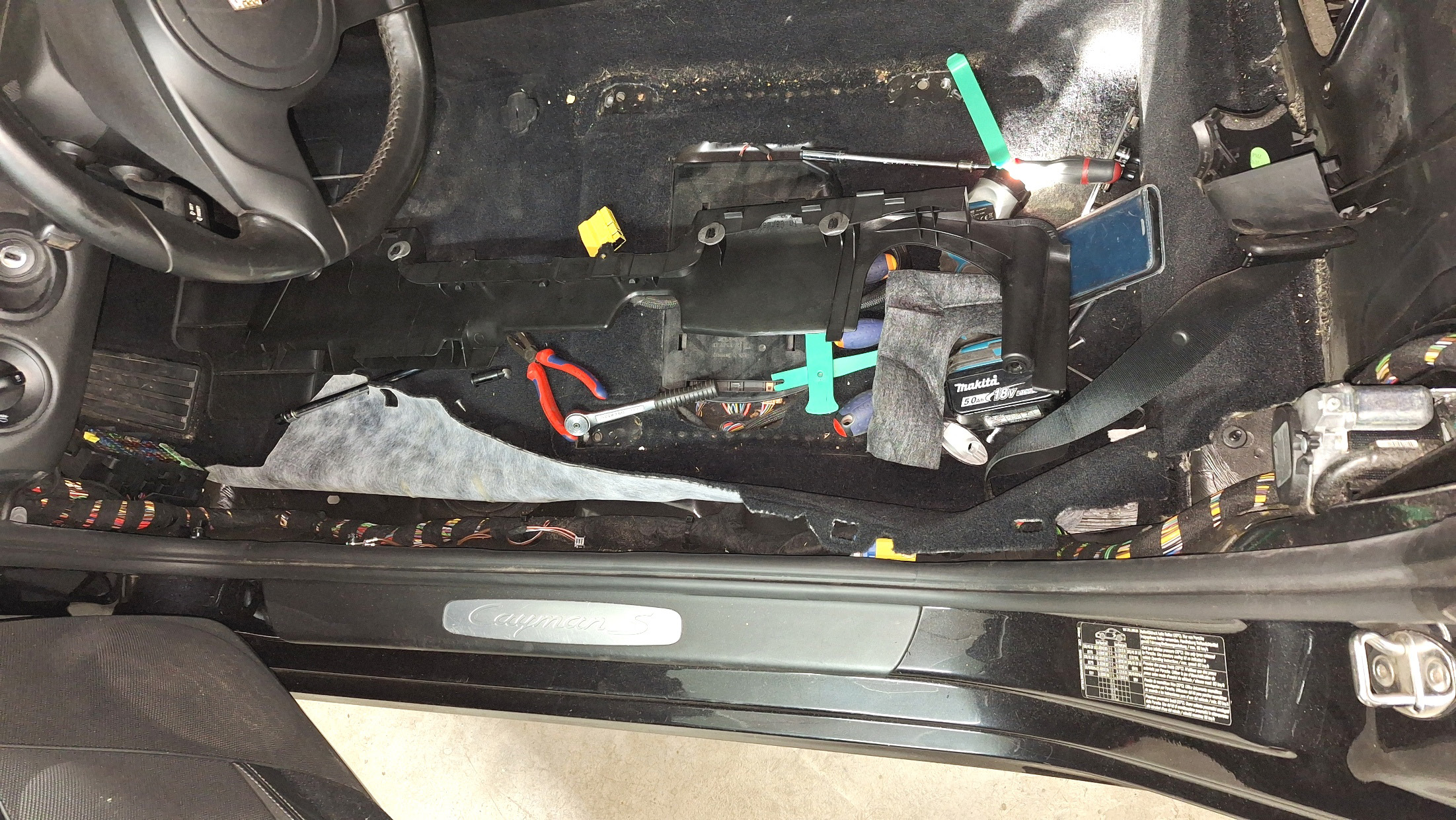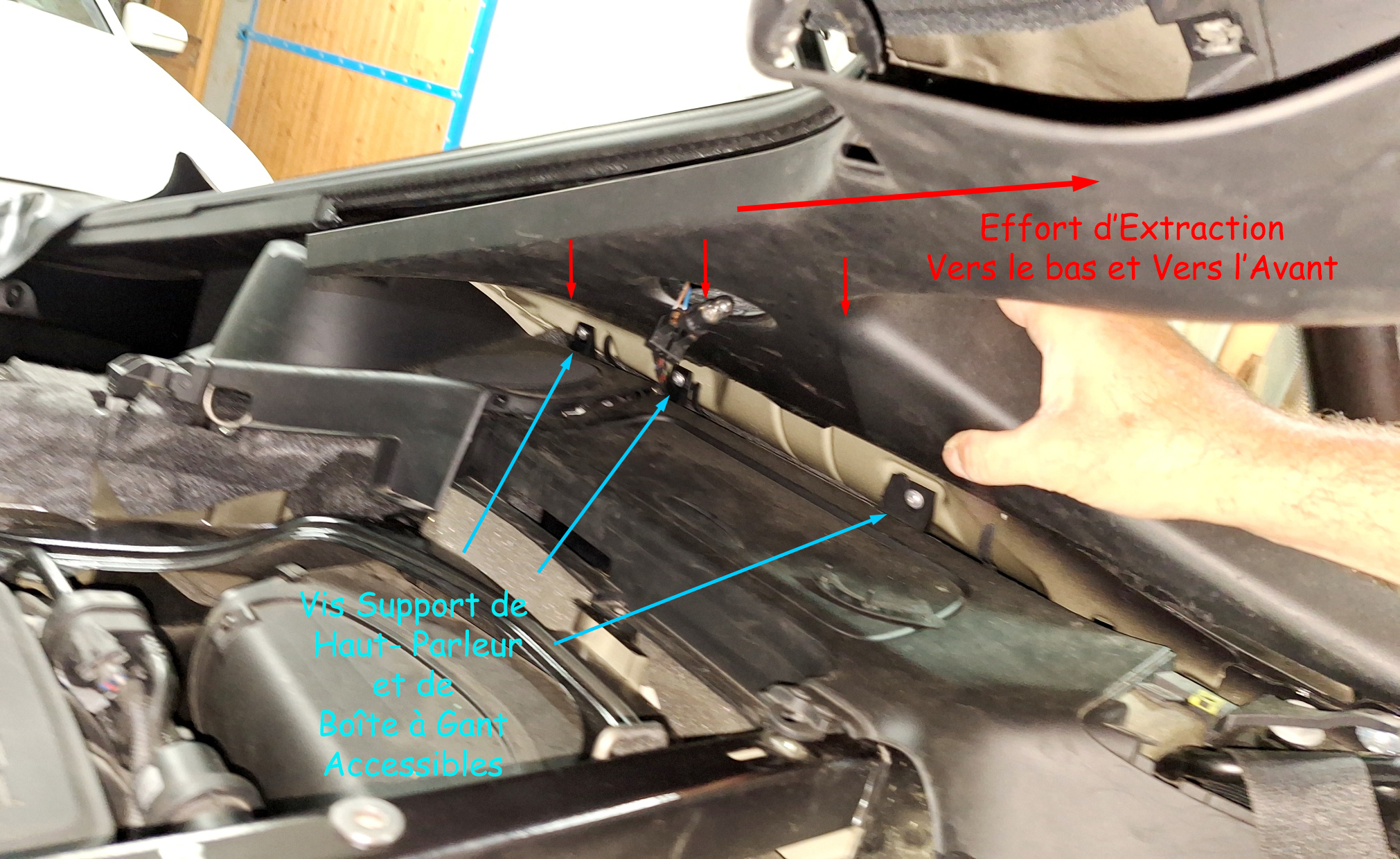 Et on dépose la boîte à gants et le support de haut-parleur.