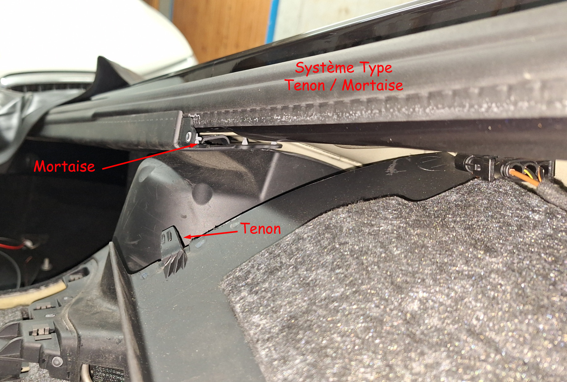 <= Cela donne accès à l'unique vis de l'habillage du tour de la vitre latérale, cet élément tenant en place principalement par un gros tenon et une chiadé de clips.
