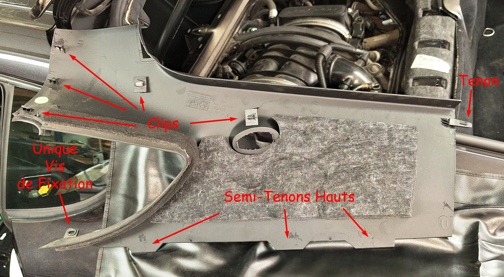 Cet habillage cache toutes les vis de fixation du support de haut-parleur arrière, et de la boîte à gants latérale.