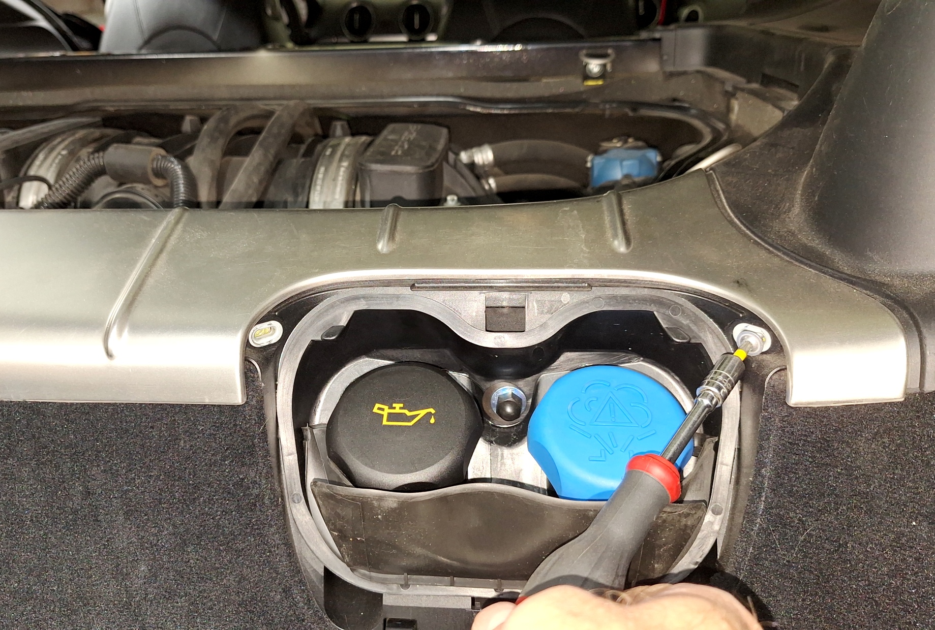 -Trappe d'accès appoint huile & liquide de refroidissement (dévissage partiel pour décoincer la moquette).
