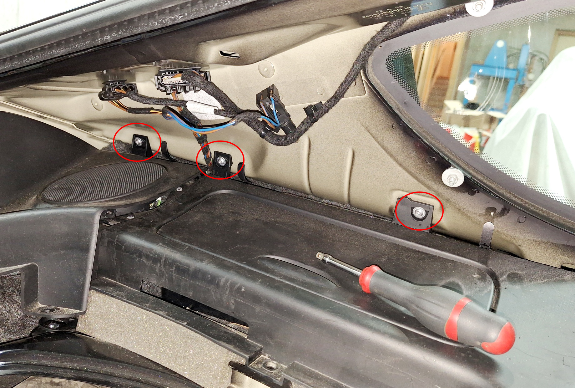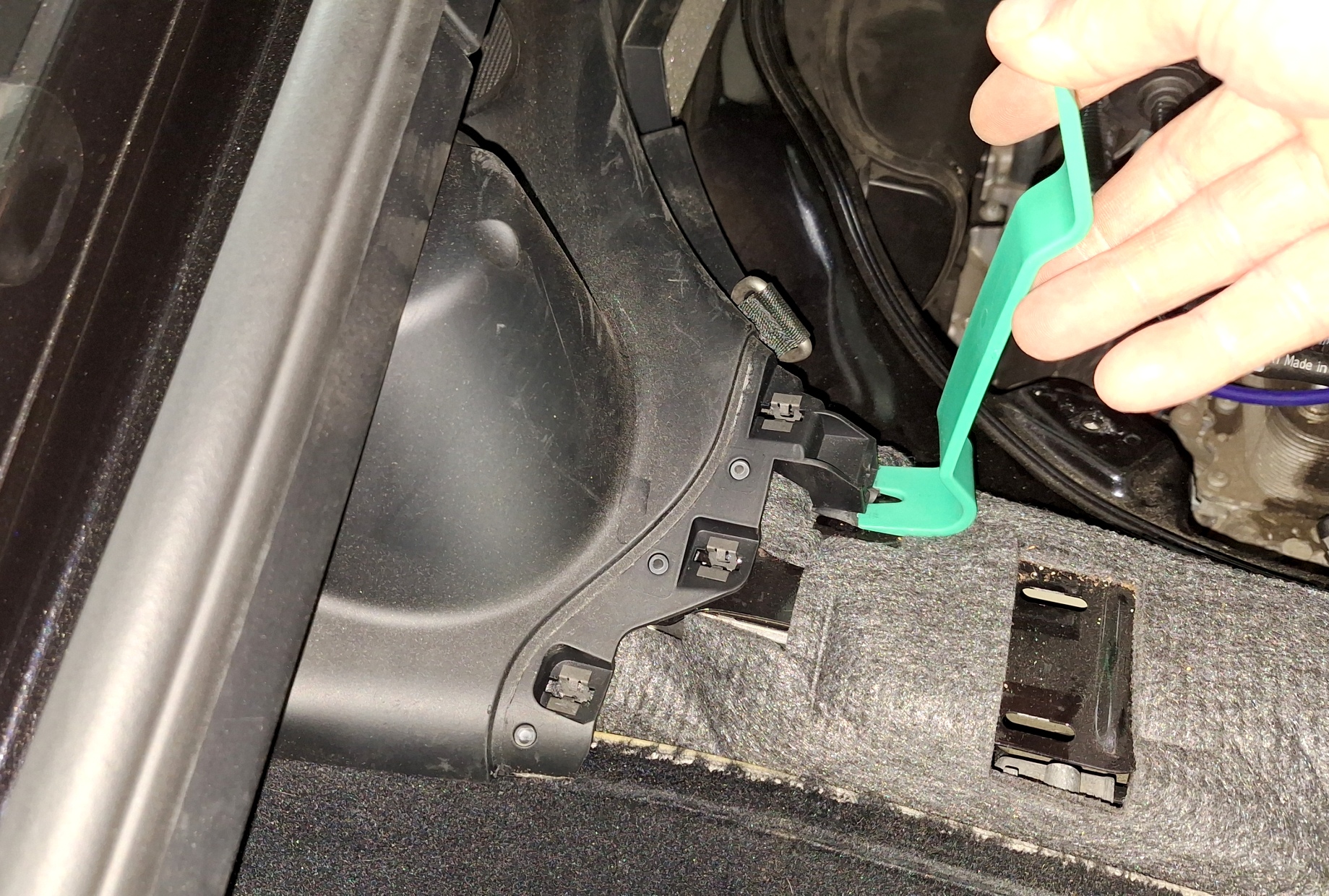 C'est le gros piège-à-con sur pleins de tutos où l'on cherche désespérément à déposer les supports des haut-parleurs arrières... sans retirer ce cache et en pétant leurs clips de maintient.