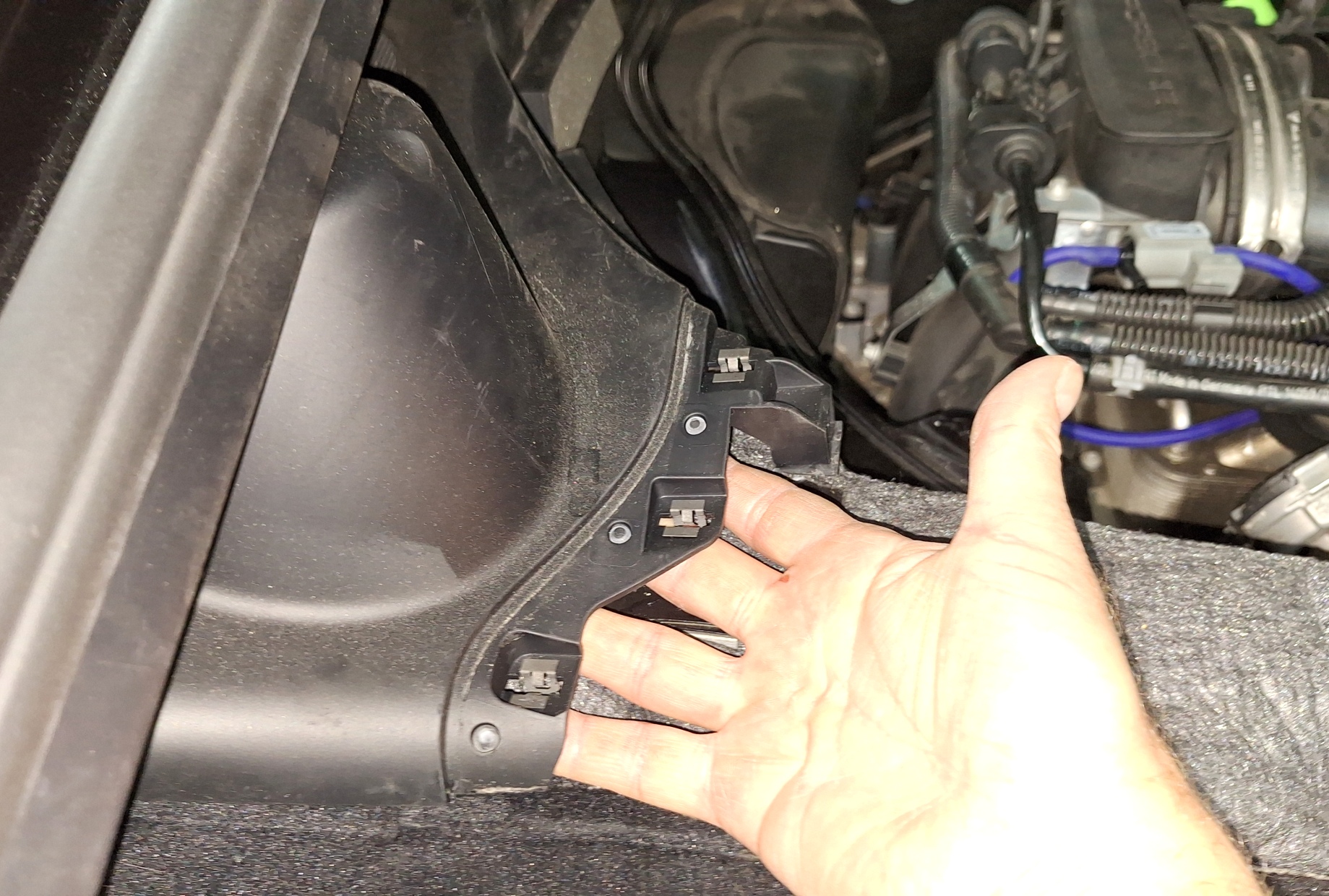 Attention, cette partie tient par 3 gros clips, l'effort pour les sortir est conséquent, et il est très facile de casser quelque chose.