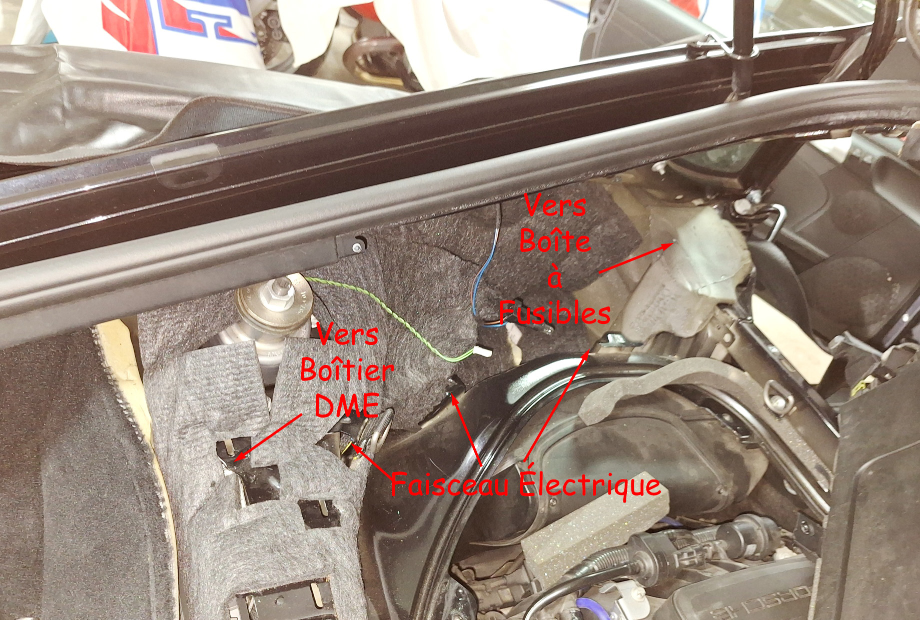 Ça y est ! Au bout d'un après-midi, j'ai accès sur toute sa longueur au faisceau électrique qui va du boîtier DME vers la boîte à fusibles.